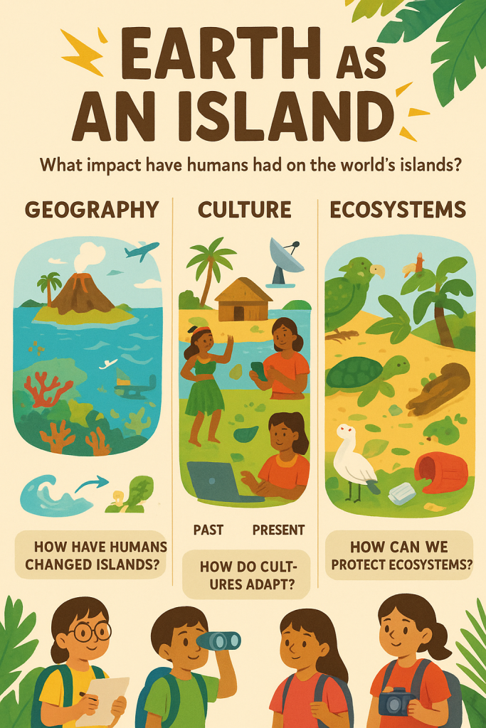 What impact have humans had on the world’s islands? We will be learning about how islands, often once isolated places, have become increasingly part of the global community. How has this changed their culture, geographical features and ecosystems? As we go island hopping, we will need to be geographers, designers and artists who are internationally minded and globally competent.